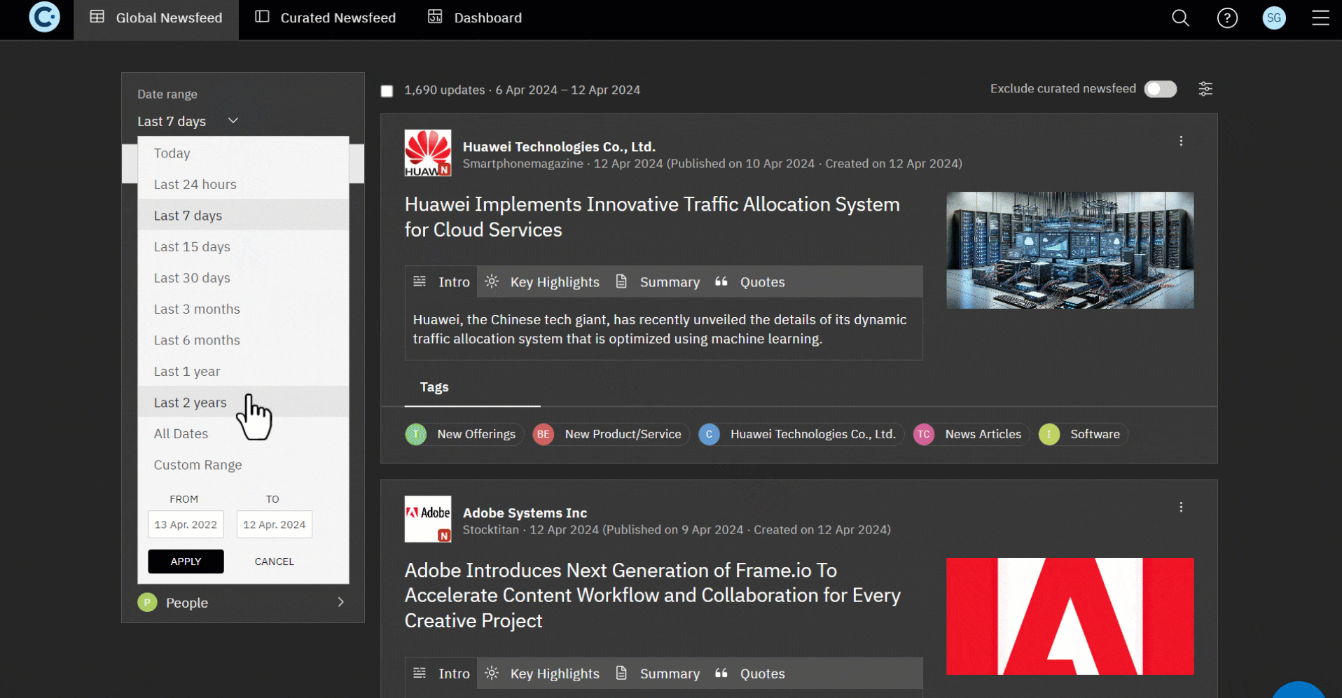 Previously, users could access only six months of historical data. Recognizing the growing need for robust long-term trend analysis in today’s dynamic markets, we’ve extended this to two years. This means, getting access to providing access to 24 months of historical information within the Contify Global Newsfeed and News API.