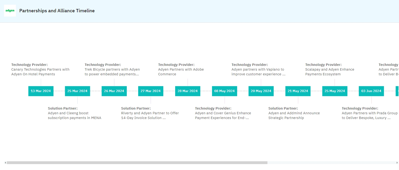 - Timeline Widgets: Auto-updating charts that visualize complex data to simplify the understanding of your competitive landscape, and facilitating effective communication of key developments to stakeholders.