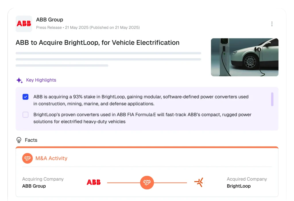 - 500,000+ sources, including online news, company websites, premium and niche trade publications, social media, regulatory portals, review websites, job boards, etc.