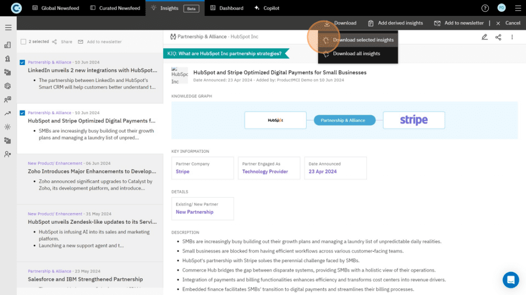 We’ve added new functionality that allows Contify Insights data to be exported as CSV files, making data sharing with teams easy and enhancing analysis.